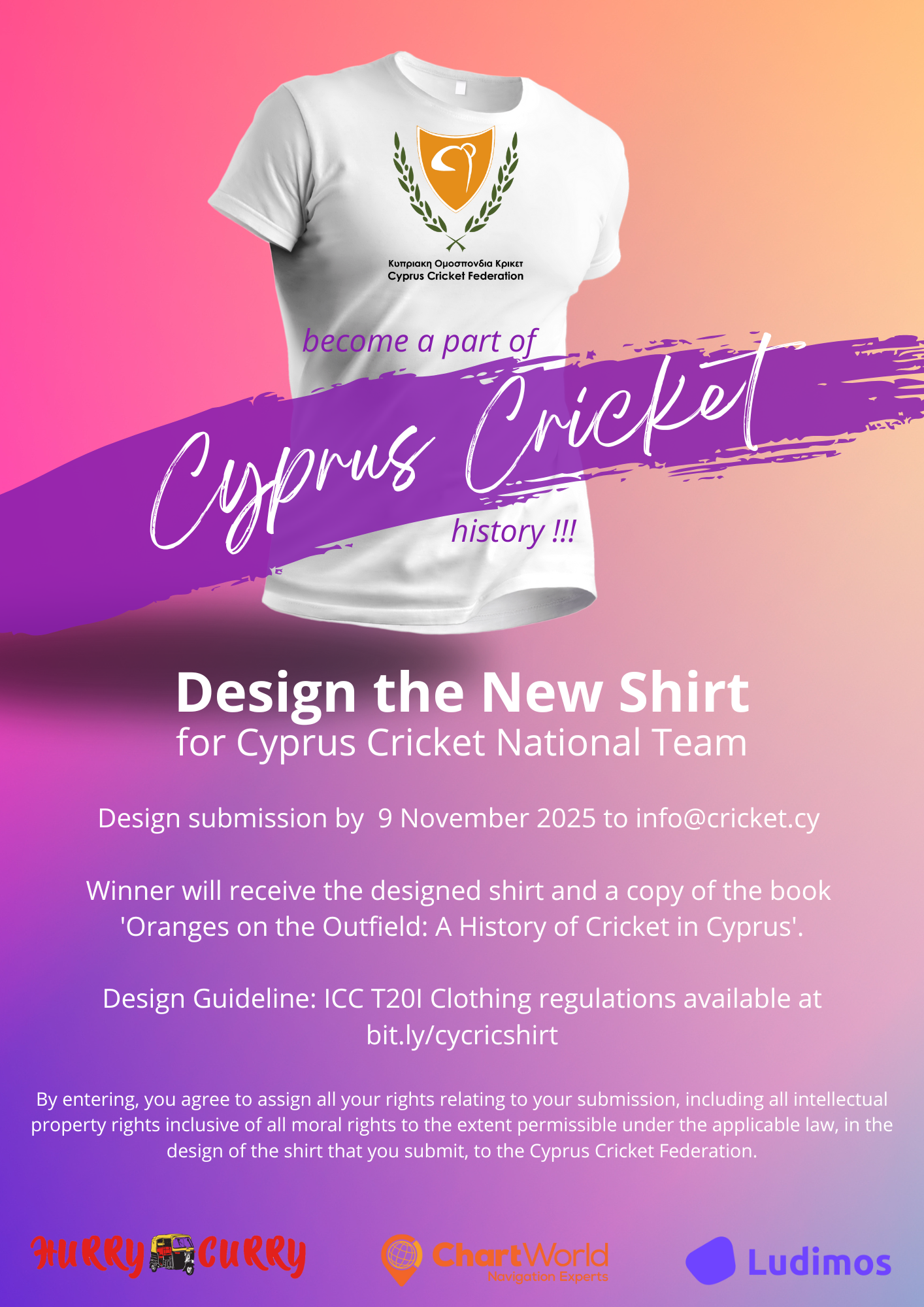 The selected design will be announced later in the year. Winner will receive the designed shirt and a copy of the book ‘Oranges on the Outfield: A History of Cricket in Cyprus’.